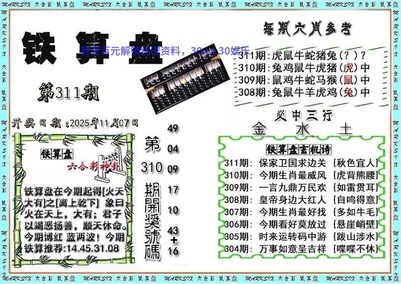 313期精解铁算盘玄机资料更新中